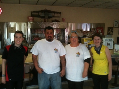 Amboy is considered a ghost town now that most car traffic has been diverted away from route 66 by the parallel I-40, leaving towns along the 66 in the desert dust. Roy’s was a pleasant respite and much-needed water stop for us just as it was in its hay day, only now its services are limited to gas and area snacks. However, the company was delightful. Deborah and her son Mike told us the story of Amboy and generously provided our water as a contribution to our cause.