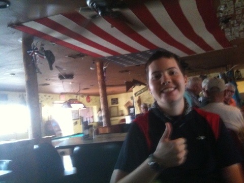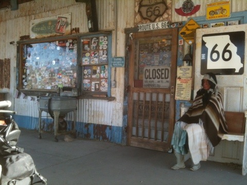 We rode about 15 miles out of Kingman, before we spotted a classic route 66 bar. With one look at each other, we agreed we could both use a drink. As we expected, Mike’s Outpost was full of old timers drinking the afternoon away. We walked into the bar and all curious eyes turned towards us.