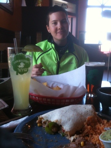 We loaded up on the nori, avocados, hummus, vegetables and fruits, then hit the road for about a half a mile where we found an Irish pub/Mexican Restaraunt called Poncho Mcgillicuddy’s. Naturally, we stopped, stuffed our faces with great vegan food, and had a drink. We were tempted to each have a second but didn’t want to risk a BUI, or worse, especially because our already low tolerances have been dramatically reduced.