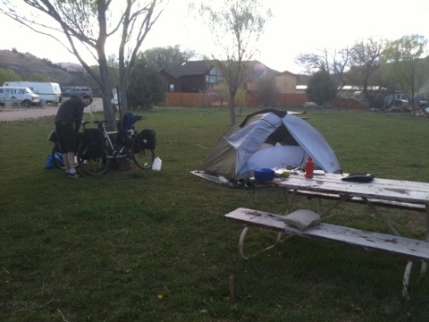 Depending on the terrain, we usually cycle about 30 miles before we break for lunch. We break out the bread and make ourselves sandwiches, ranging from peanut butter and honey to jam packed veggie delights. Accompanied by one or all of chips, olives, pine nuts, fresh, dried, and/or canned fruit; we eat so much, we hardly have anything to put back into our bags.