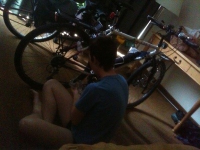 Byron is a potter, and artist who has let hundreds if not thousands of cyclists stay in his trailer where we will stay as well. We just had dinner at the cafe where he works, and now will check out the trailer he has named “The Octopuses Garden.”