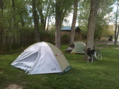 We decided that this was a good place to wait out the impending rain that we suspected would hamper our ability to climb over the pass. Besides, ten miles before reaching Crowheart we met another cyclist heading in the opposite direction who said that he was forced to wait until the road reopened after a snowstorm so we wanted to wait for a clear day to attempt the climb. Plus, after cycling 200 miles in 4 days we decided that we needed a break so we spent today relaxing, doing puzzles in the campground’s laundry room, and hanging out with Henry, who caught up with us early this afternoon. We are finding that after cycling more than 2,200 miles we are tired and very saddlesore so we spend our rest days doing as little as possible.
