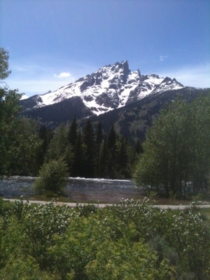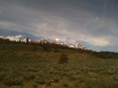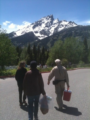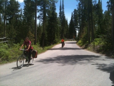 We had arranged to drive through Teton National Park with Casey and Dale, another touring cyclist who was also staying with Casey. So we packed up and set off for a day checking out the wildlife and scenery. We first went to the grocery store where we met up with a couple Spanish cyclists who we hoped to meet up with again. We stopped many times park to find the perfect place to camp and saw some moose, bison, and numerous birds. We saw the Spaniards a few times before we had a picnic beside a creek with the Tetons in the background.