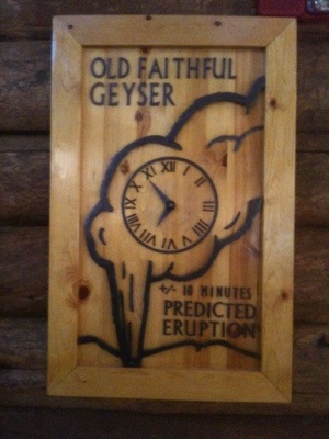 As we arrived and caught our first glimpse of the Inn, we could hardly believe this is where we would be staying. The Old Faithful Inn was opened in 1904 and designed by the 29 year old Robert Reamer from Ohio. They used lumber collected 4 miles south of the hotel, and 500 tons of rhyolite rock quarried just 5 miles away. It looked like a winter wonderland! It was as if we went back in time with stone fireplaces, tree trunk support beams, and antique light fixtures all around. We even had a bell hop help us carry the immense of luggage was have up to our room. We were hungry, but quickly rushed out to the deck to watch Old Faithful erupt. It was the first time either of us had seen it before, and as we watched we shed a few tears. This was the prize for riding our bikes more than 2300 miles to see this. We were happy and so proud of our accomplishments. Over the course of our stay we witnessed this periodic eruption six times and each time we felt like it was a celebration of our achievement.