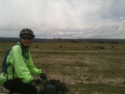 There were many more geysers, pools, and hot springs along the way. We stopped at a few for a quick picture but kept going as the ominous clouds slowly rolled overhead. We made it to Madison campground where we met two cyclists, one German and one Austrailian on their separate journeys who were going to share a campground that night. We stayed for about an hour, sharing stories and information about the roads to come. Before we set off we saw yet another herd of bison grazing on the spring grass.
