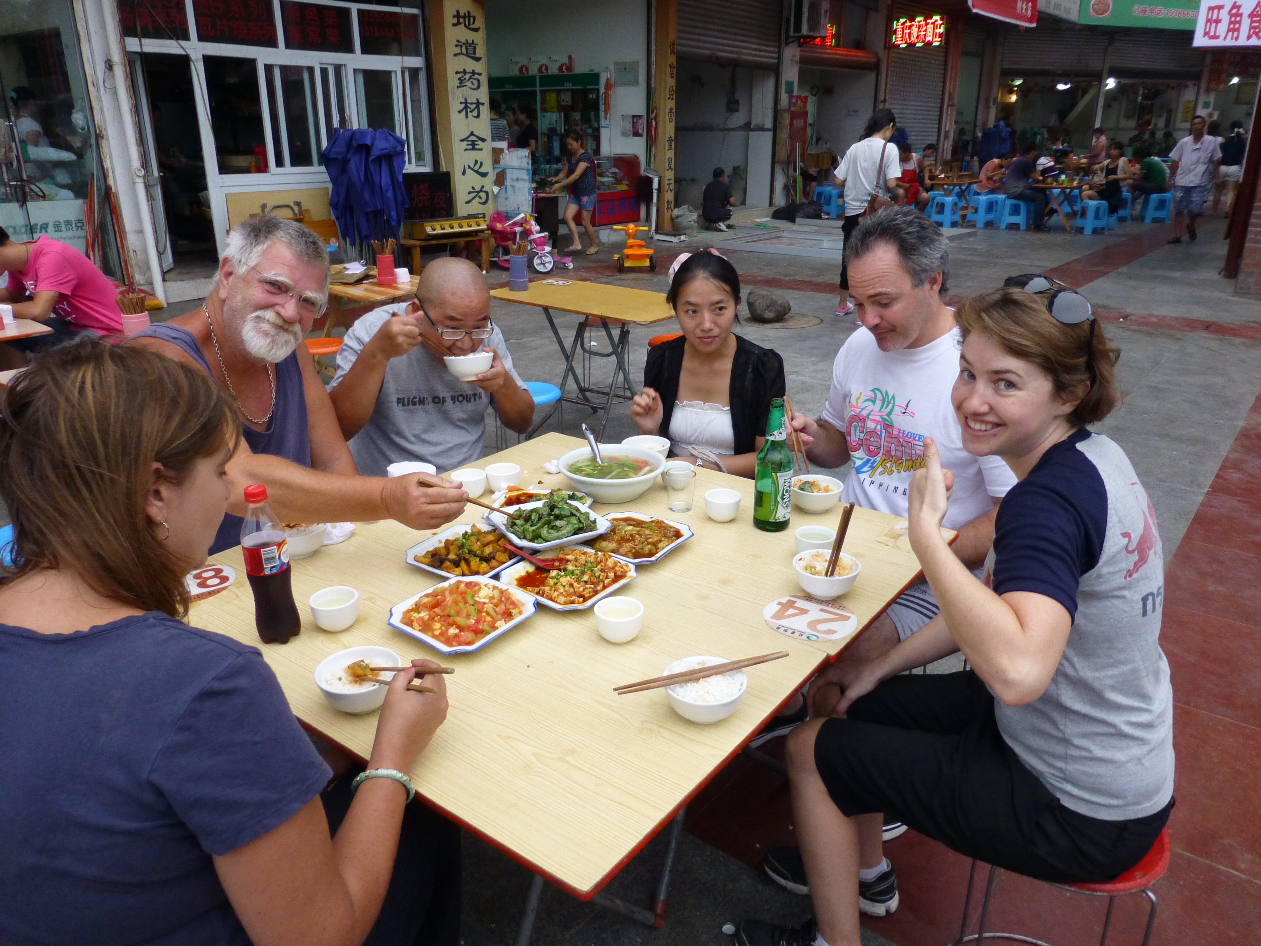 As soon as our business transaction was complete, we got a phone call (on our newly acquired cell phone) with an invitation to dinner with the rest of the crew. We accepted and ate yet another hearty, jovial, spicy Sichuan meal.