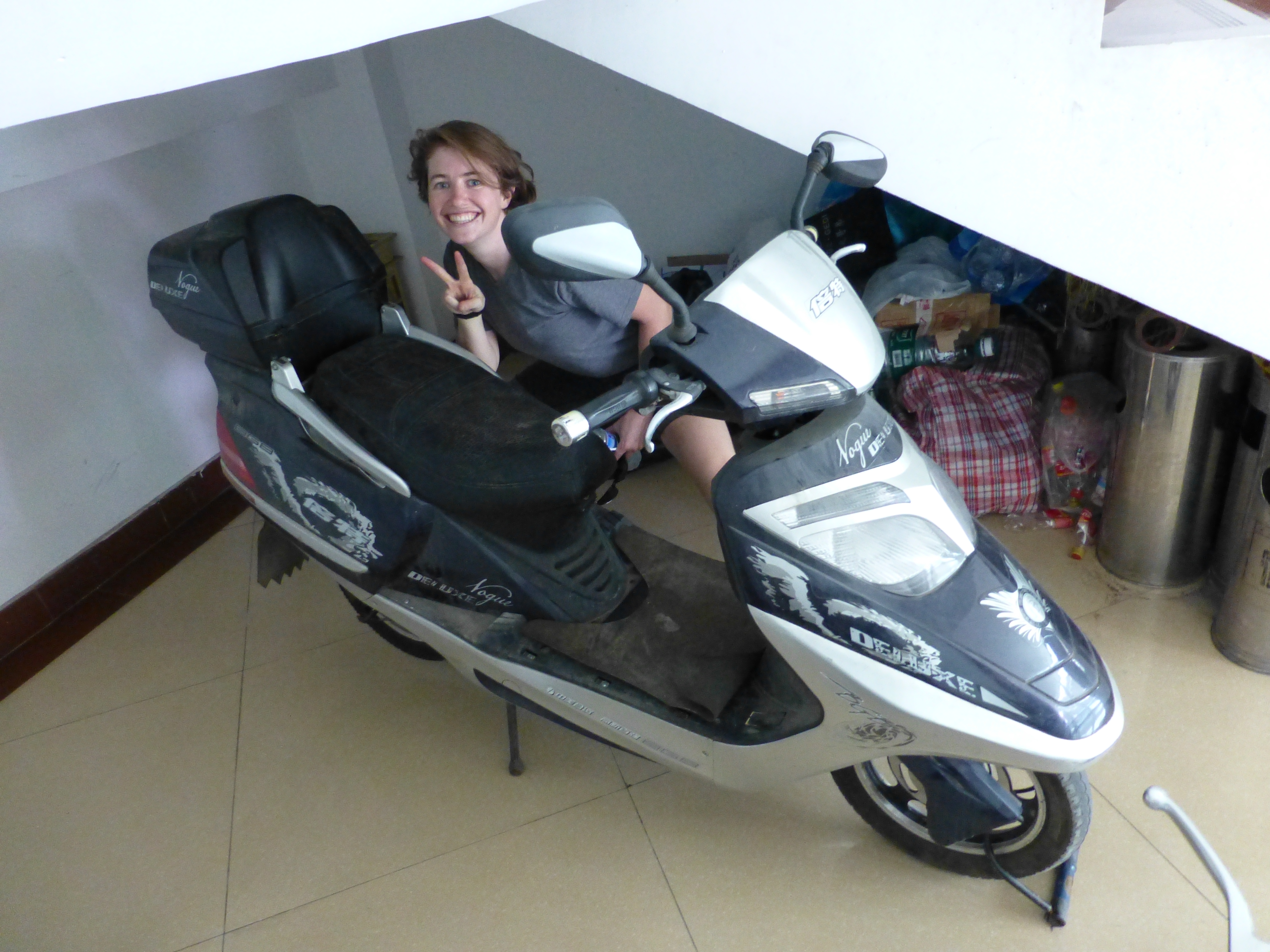 When we got back to campus we thanked Mark and Ricky for showing us such a good time and expressed our delight at having a chance to ride their motorbikes. Fortuitously, another foreign teacher is relocating to Chengdu and was looking to sell his electric moped. So, after a bit of negotiating, we bought ourselves a motorbike of our very own. This will give us the opportunity to be more independent and to explore in style.