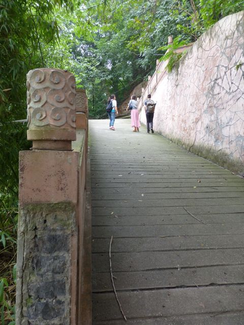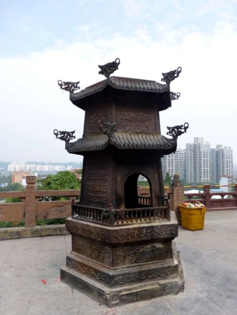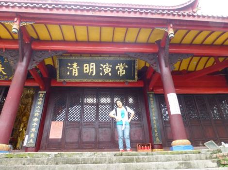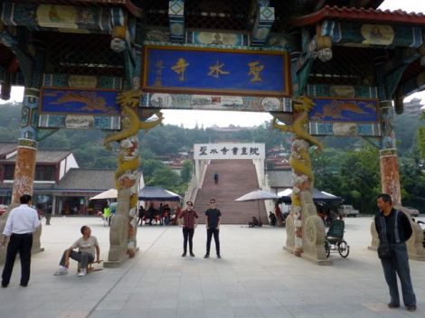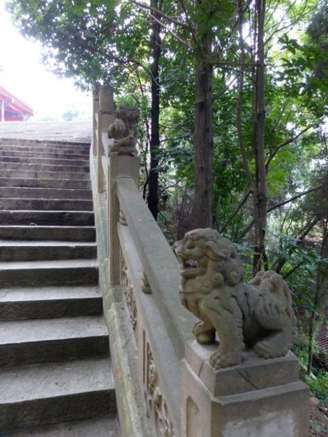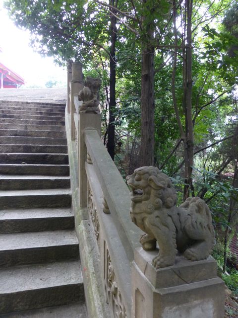 As we approached the temple, we knew immediately that it was a special place. We had seen it once before from the road, but standing at the base of the first of many staircases we could fully take in the powerful scene. The multi-tiered Holy Water Temple is situated on a hill above Mianyang overlooking the river and city. It sits among bright green trees and is still expanding up the hillside.