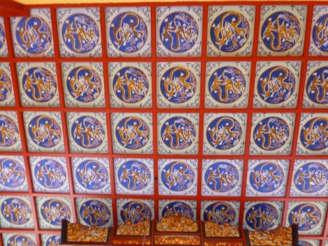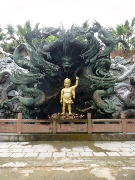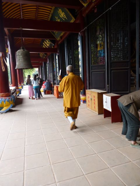 Every surface displays incredible craftsmanship. Long walls are covered with hundreds of life-sized statues called luó hàn; each one represents a Buddhist fable, and is vibrantly painted. Erin told us that if you count the number of statues from anywhere you like up to your current age, you would find one that is pertinent to your life.