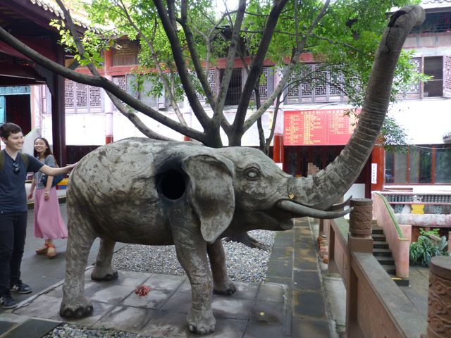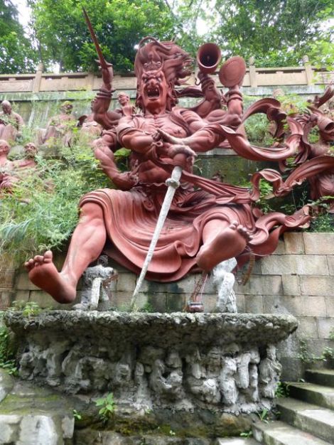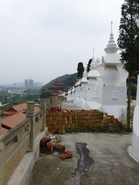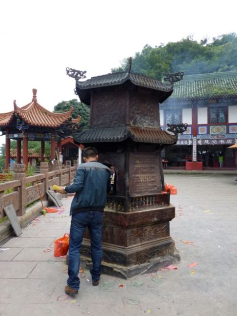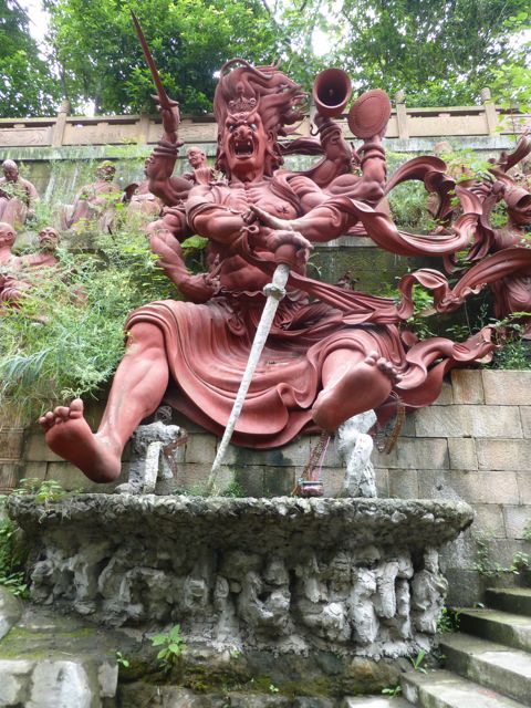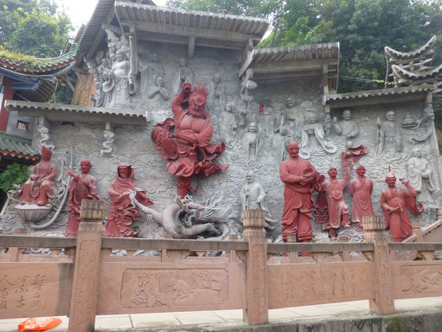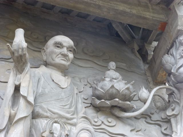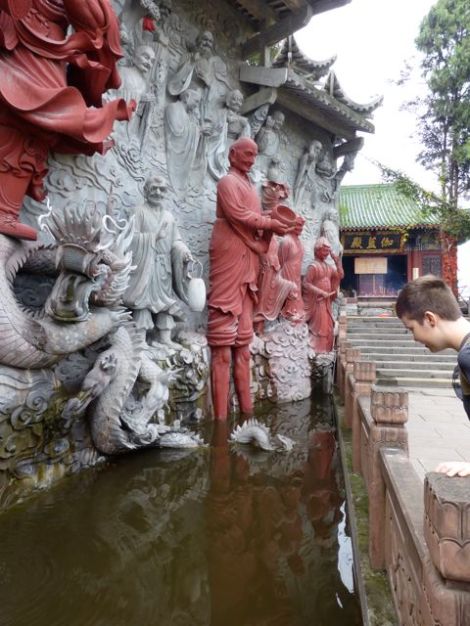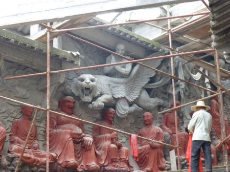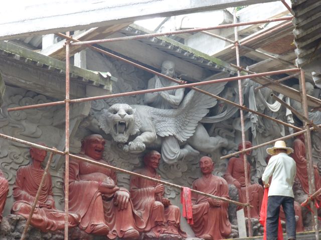 Although, like many buildings in this area, it suffered damage in the massive, tragic 2008 earthquake, we saw artisans diligently rebuilding and retouching the immaculate sculptures that cover many of the temple’s walls. This is a relatively new temple, especially by Chinese standards, and it appears far from complete, as many of the structures need to be rebuilt after the quake. Behind the completed buildings stand the skeletons of new additions.