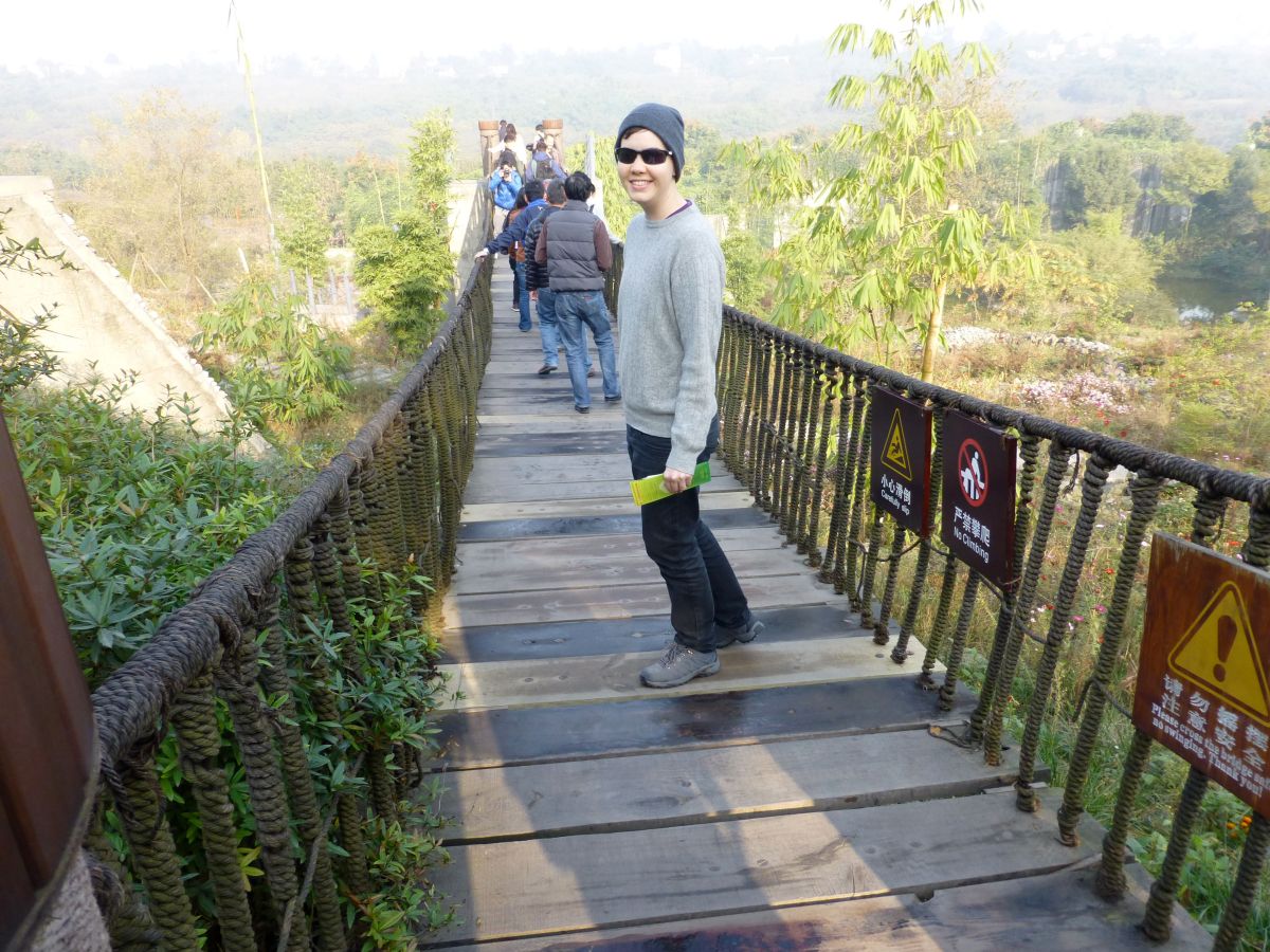P1010741 Published November 26, 2012 at 4320 × 3240 in Pandas! ← Previous Next → The panda center has these wonderful rope bridges that take you to the enclosures. Mi, obviously, was enjoying the Indiana Jones moment.