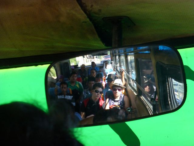 The two buses we took were jittery and punctured with rust holes. The seats below these holes were soaking wet.