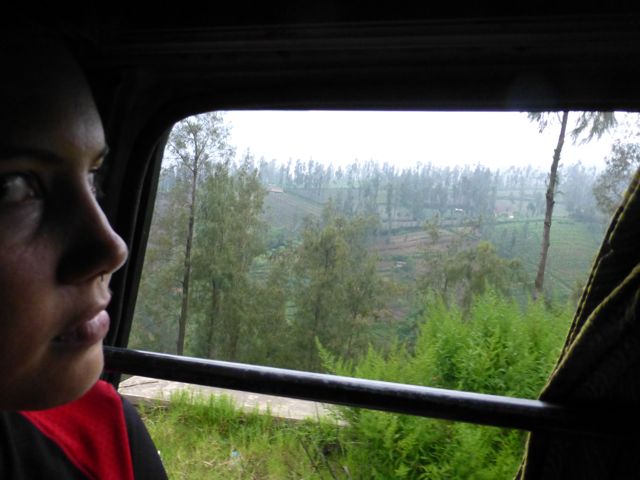 After the train ride to Probolingo we met up with two Dutch travelers who were making their way up to Bromo, a mountain town with beautiful mountains, valleys, and volcanoes. After the excitement of the day before, we tagged along with them. The van that should have seated 9 sat 20. It took us from a sweltering hot city to a tiny, chilly mountain town.