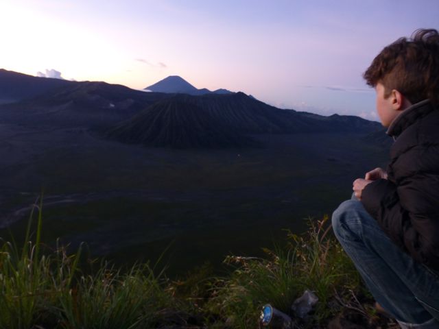 We hiked up Mount Pananjakan for a couple hours with our new Dutch friends Frederik and Floor and our new Chinese friend, Song, who also forgot to visit an ATM and ended up at the same hostel. We arrived at the perfect time, took a seat and watched the sky fade from black to blue.