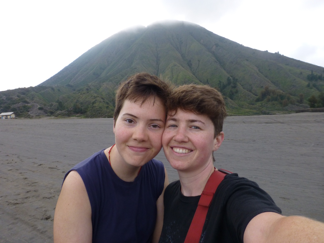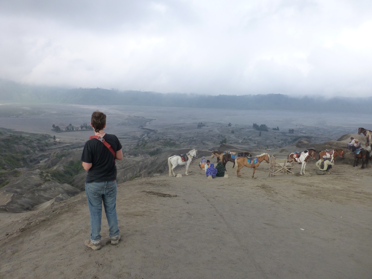 We hiked down, and waited for the free breakfast buffet to begin at our hostel. The food was incredible and the company was even better. Our table was lined by people from China, South Africa, Holland, and the US, which made for some especially colorful worldly conversations. We ate multiple plates, then went to our room to rest before hiking up to the brim of Mount Bromo to look inside the crater. Mi slept, but Kelly was so enthralled by the end of the second Game of Thrones book that she kept on reading. Once Mi woke up, we started walking to Mount Bromo.