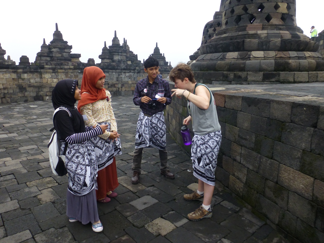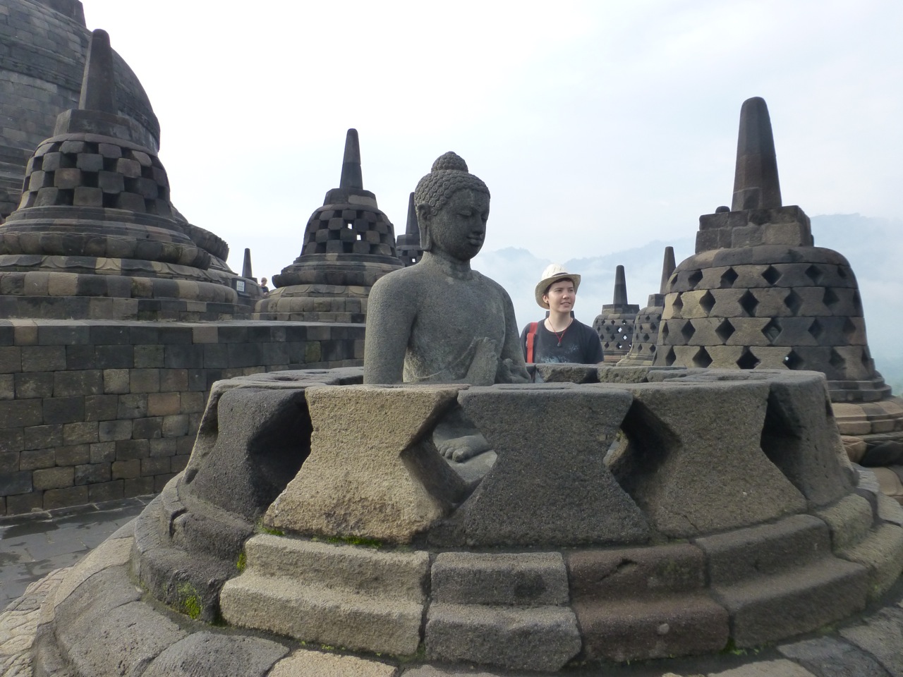 The next morning we woke up before the sun to catch a tour that started at 4:30am to two famous temples in this region: Borobudur and Prambanan. Some say these temples rival those of Ankor Wat, but on a significantly smaller scale. Both of these temples are afflicted by occasional earthquakes. Our first stop was Borobudur, a Buddhist temple.
