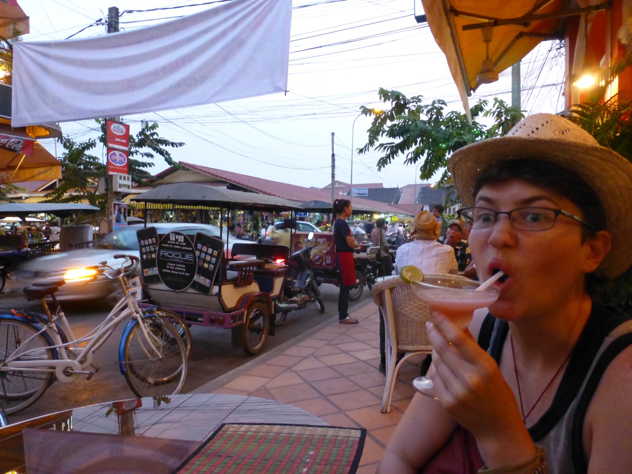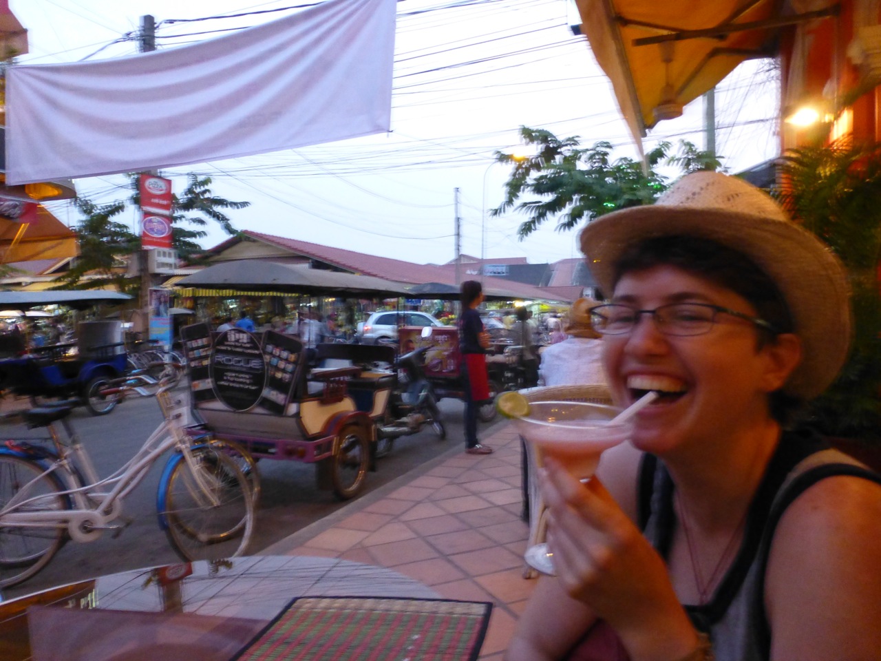 After our nap we rented bikes from our hostel. It was $2 a day and half goes to a charity that benefits the community. If you don’t use a charity bike rental, it is $1 a day. That day, we rode down to explore the Old Market and Pub Street.