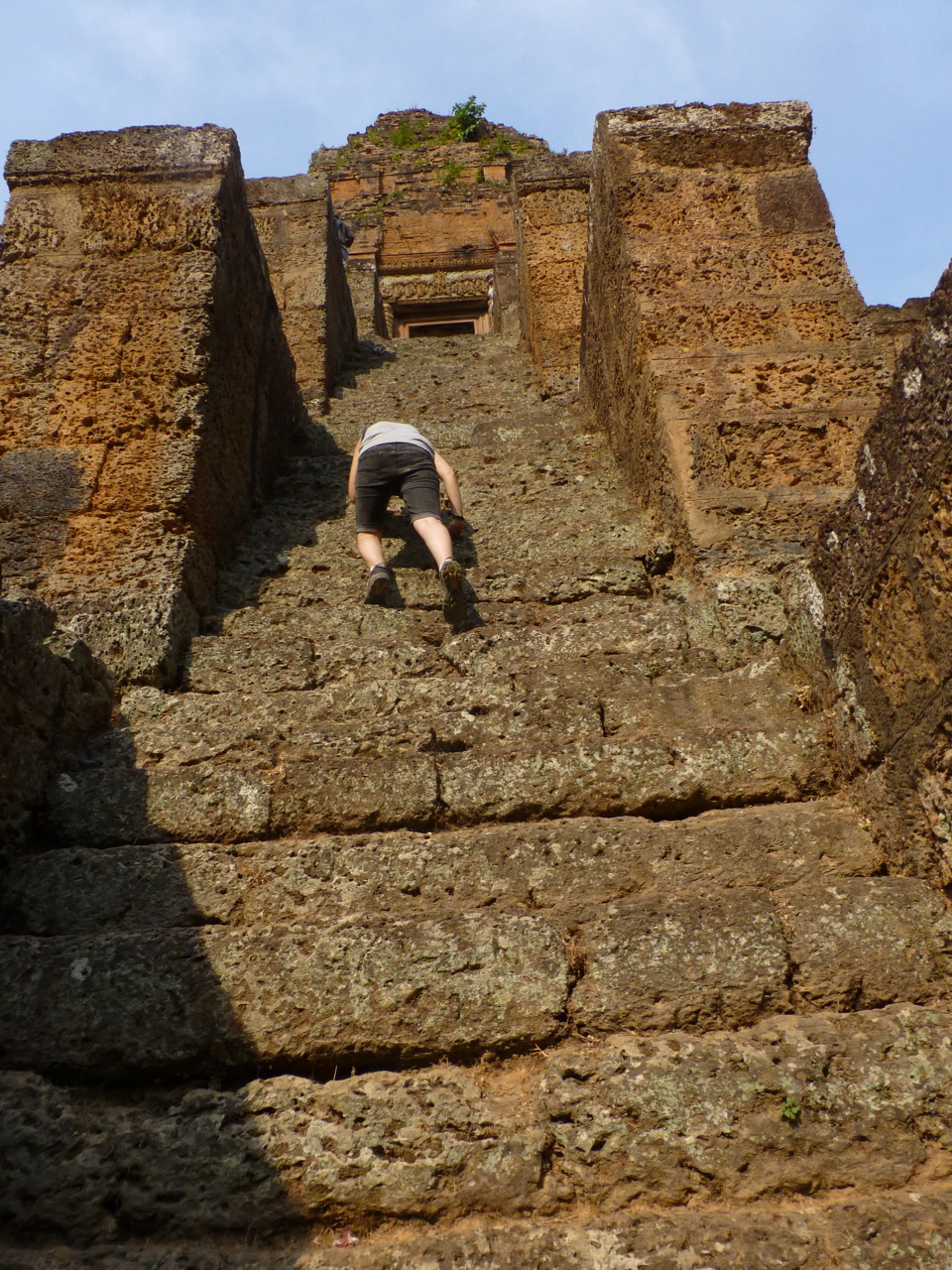 By the time we left Angkor Wat, it was already blazing hot. Tourists have the option to buy 1,3, or 5 day passes during which they can explore the huge complex. We only had 1 day and were determined to see as much as we could, so we hopped on our bicycles and set out for other temples. While some were crowded with tourists, others were steep, unmaintained, and deserted.