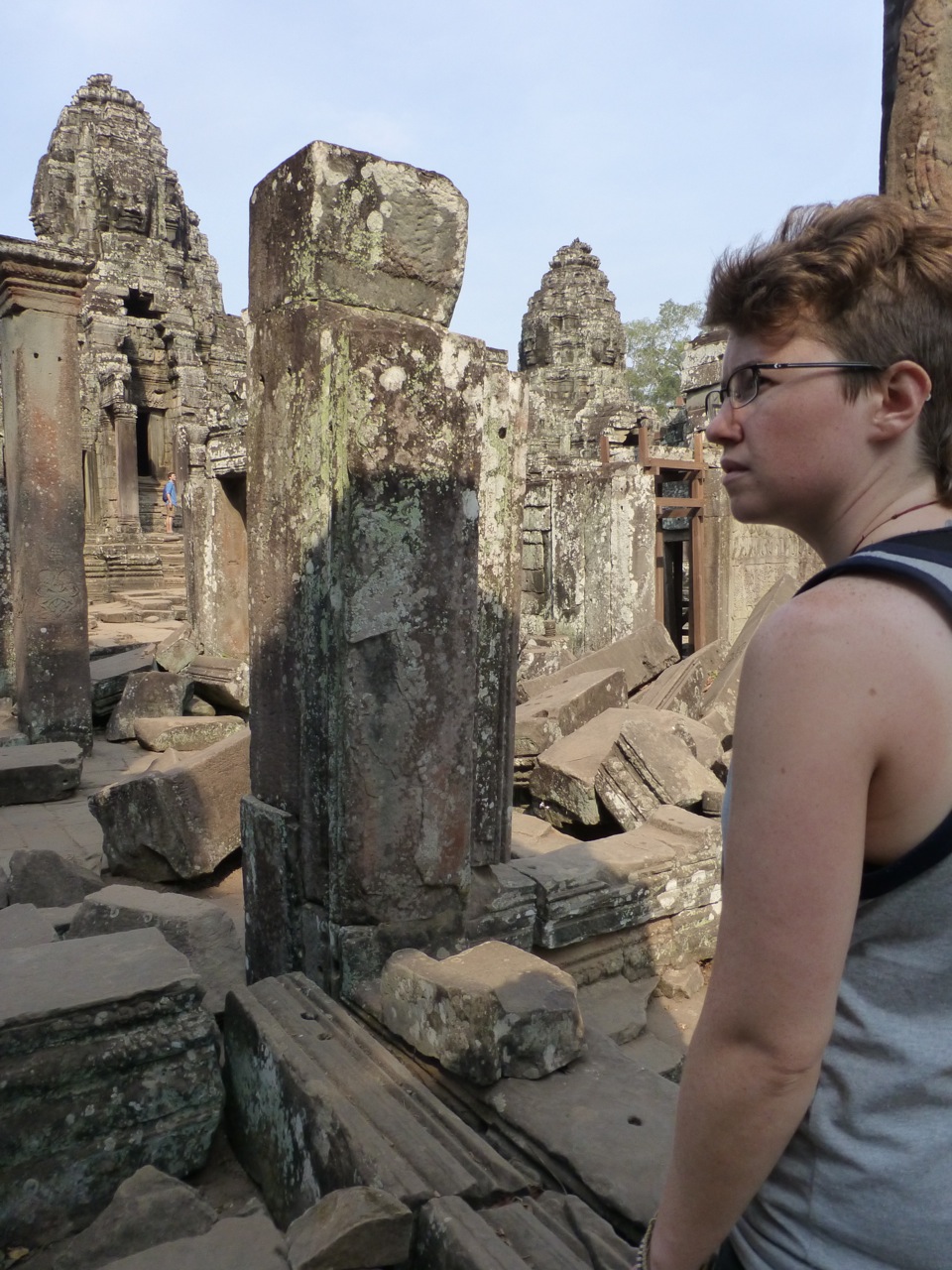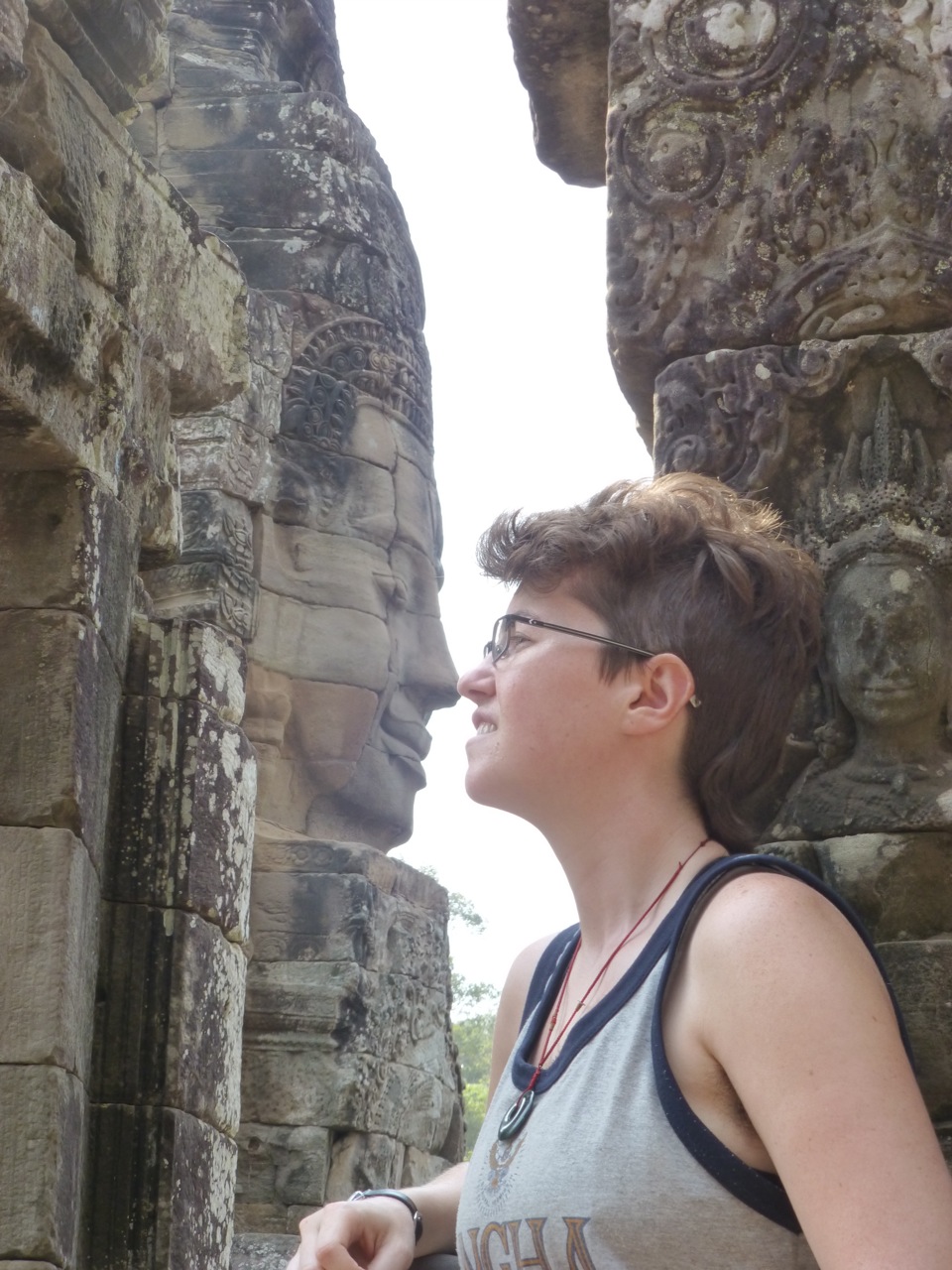 Temple Bayon was one of Mi’s favorites. The whole temple had a distinctly comforting and serene atmosphere, mostly because of the colossal faces that smiled down at visitors, usually with eyes closed, appearing totally content.