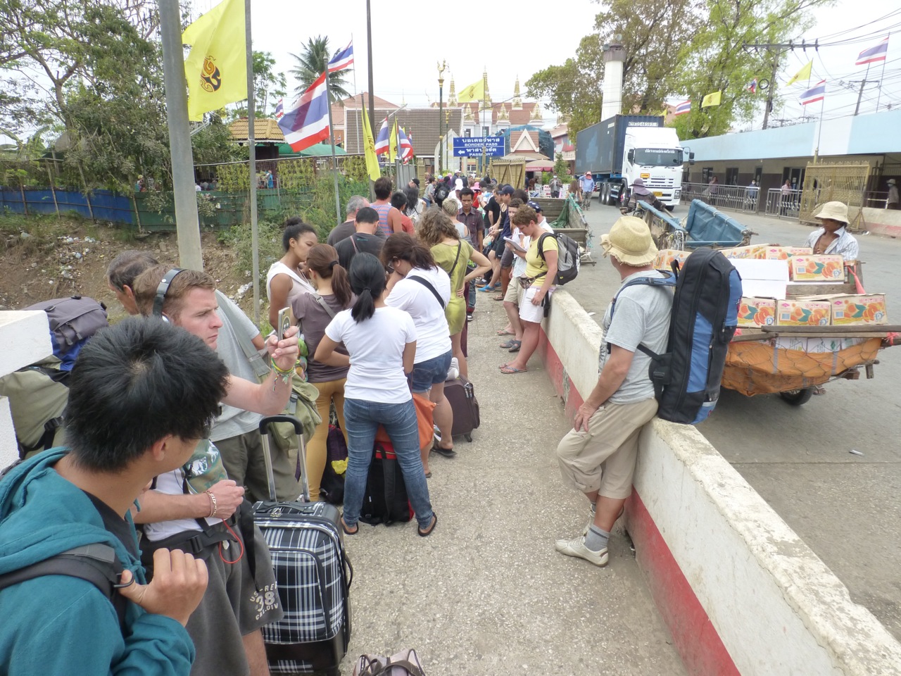 We took a bus to the border of Thailand and spent hours waiting in immigration lines.