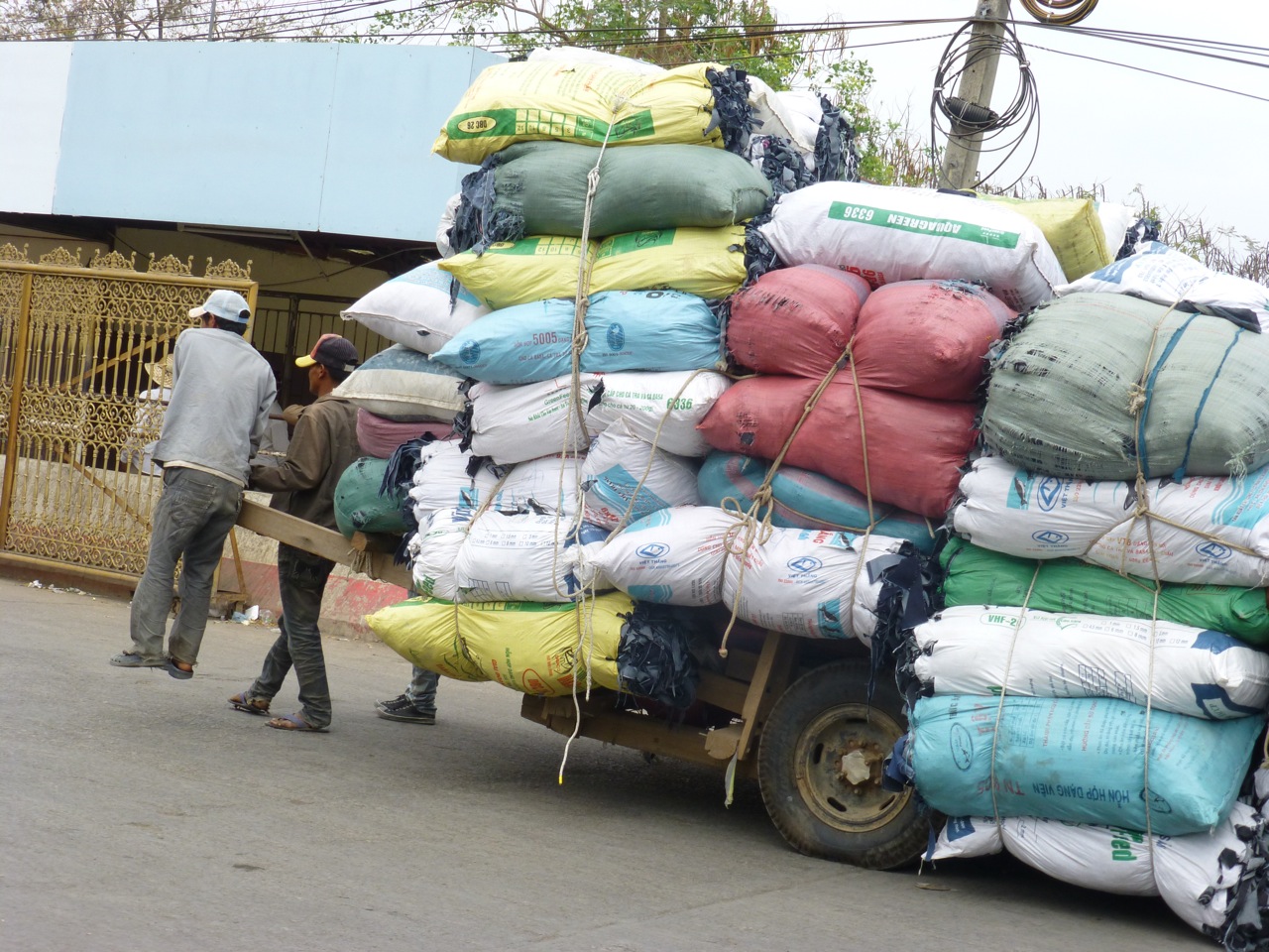 While we waited, innumerable carts like these crossed the border in both directions. Sometimes their burdens were so heavy that it required many people to push. The carts usually had only two wheels, so when the loads teetered, the people at the front were lifted off the ground.
