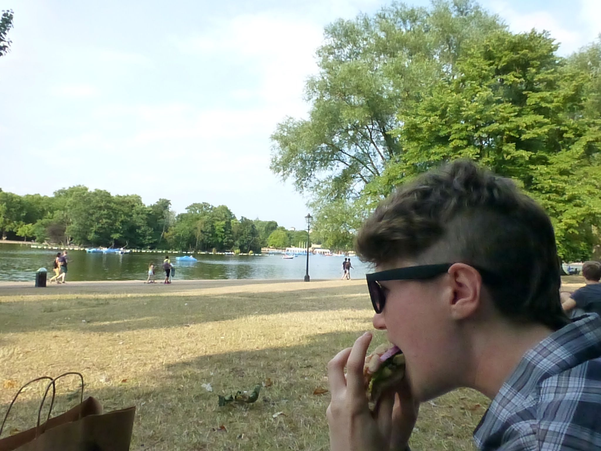 After the museums, we were tired and hungry so we walked to Hyde Park where we took off our shoes and devoured the leftovers of our homemade lunch as we watched boaters and swans on the lake.