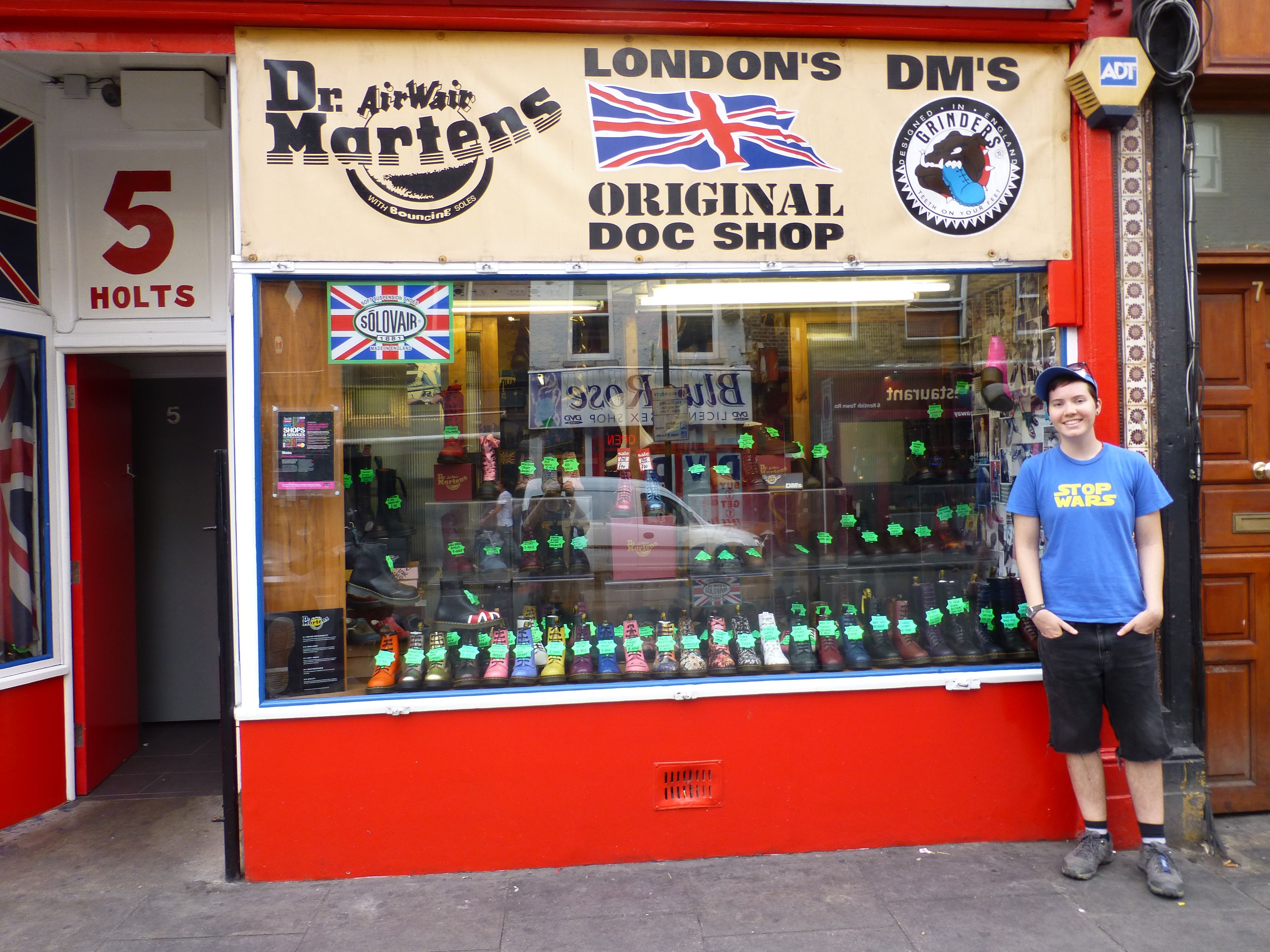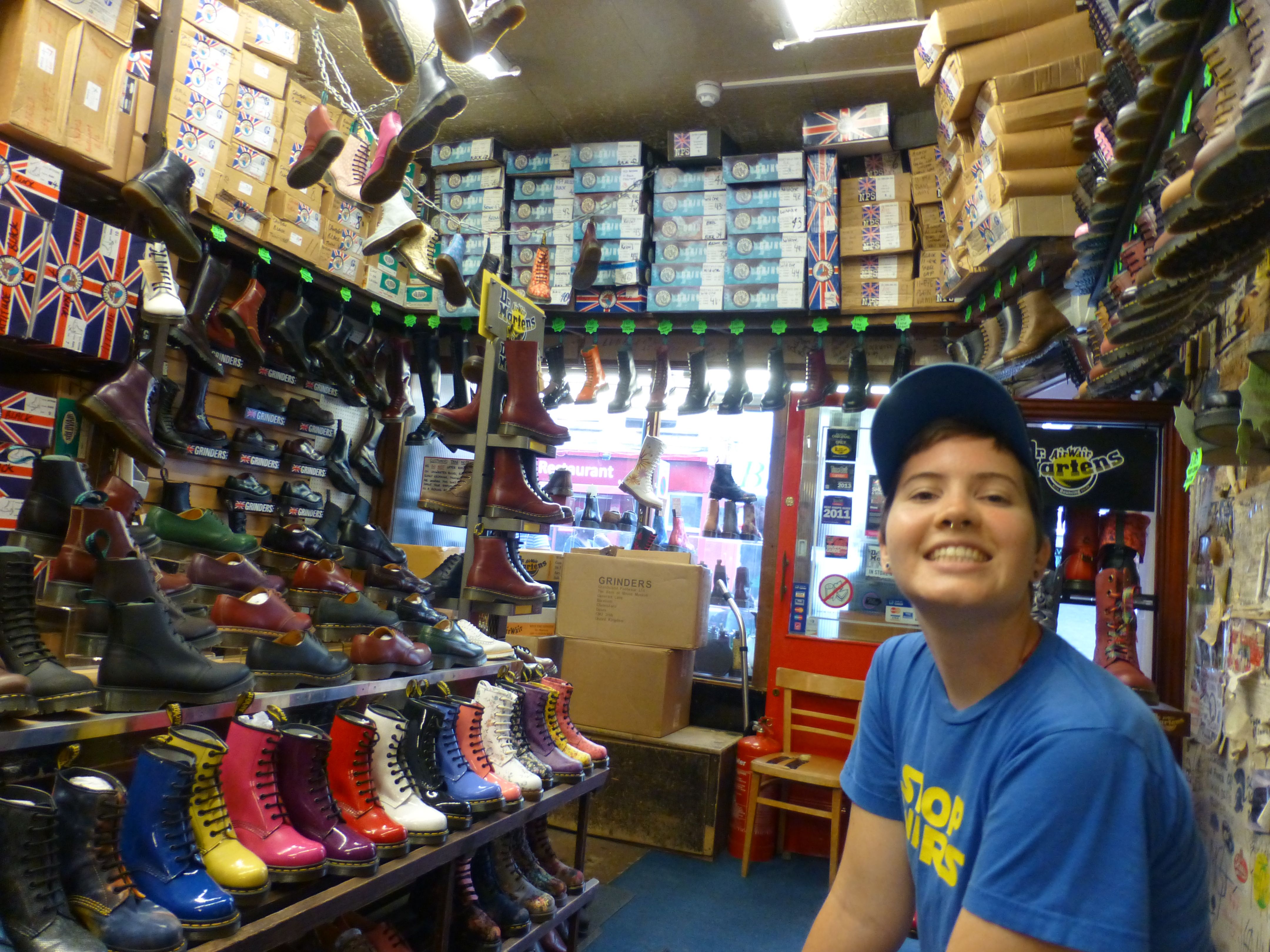 We found the original Doc Martens shop and had to take a look inside. Mi needed good shoes for Norway but also required that they were vegan. We knew that Doc Martens had a line of vegan shoes so we took a peak inside. They only had two pairs in Mi’s size and one happened to be the color Mi wanted! The salesman was telling us how people come from around the world to buy shoes from this  store and if we waited even a day the shoes would most likely be gone. He told us that in Norway we would pay at least twice as much and probably wouldn’t find the vegan shoes. To be honest, we knew right when we saw the shoes we had to buy them. Kelly bought them for Mi’s belated birthday present.