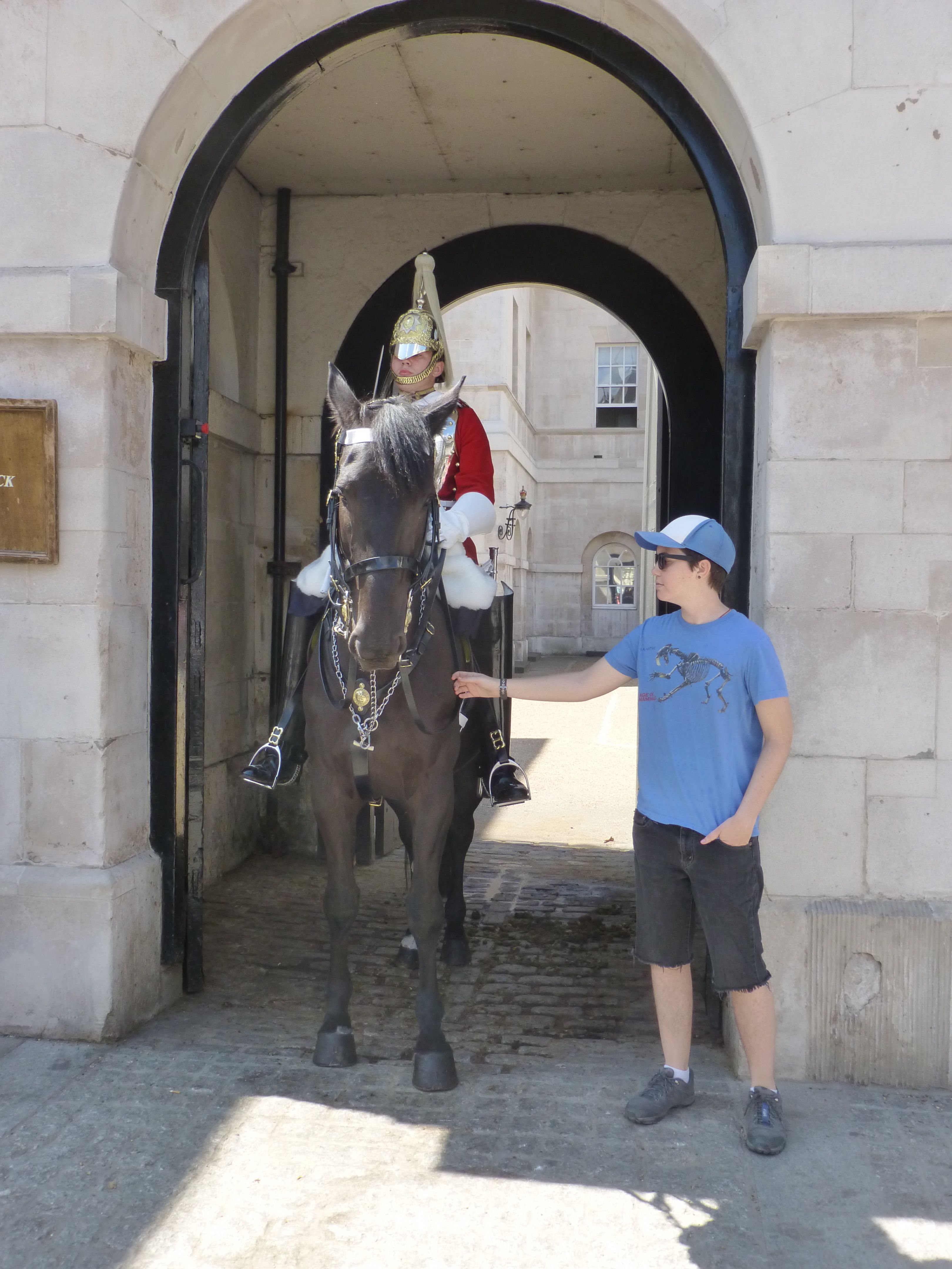 The horse was so beautiful and very used to being in large crowds of tourists trying to get a glimpse of the guards in their bear fur hats. This day was especially crowded because Queen Elizabeth left the palace to visit the 3rd in line for the crown at the Kensington Palace. We took about 30 pictures of this horse alone.