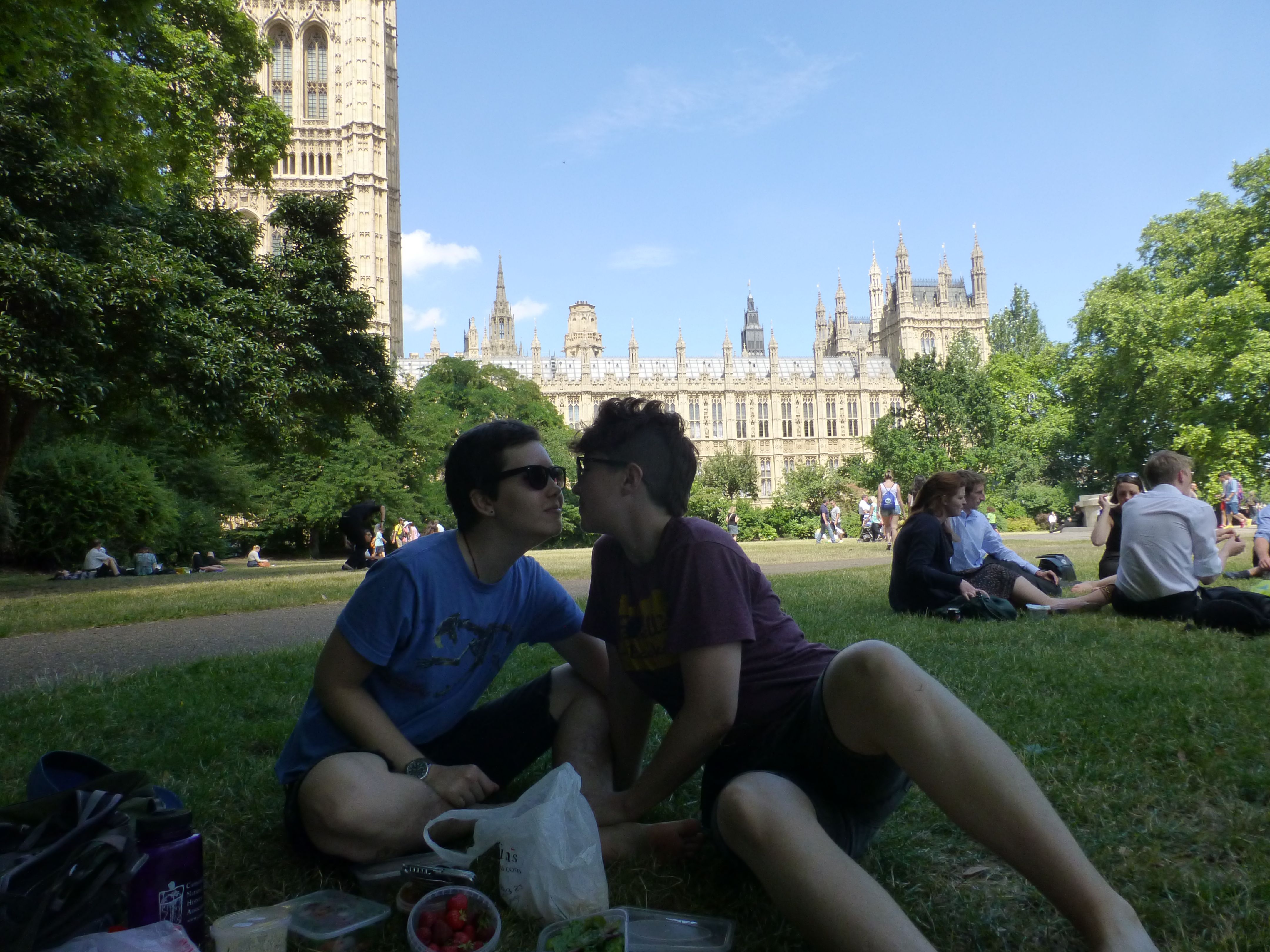 We stopped for a picnic in a park behind the Houses of Parliment. Every lunch break we have has been so relaxing and romantic. We eat our delicious salads and sandwiches, then feed each other strawberries while we look up at the clouds.