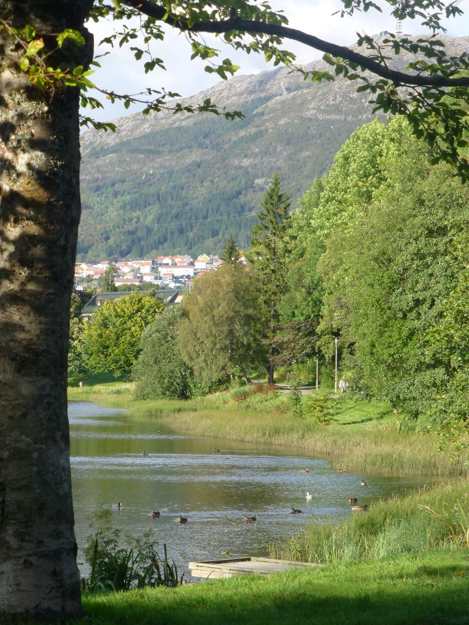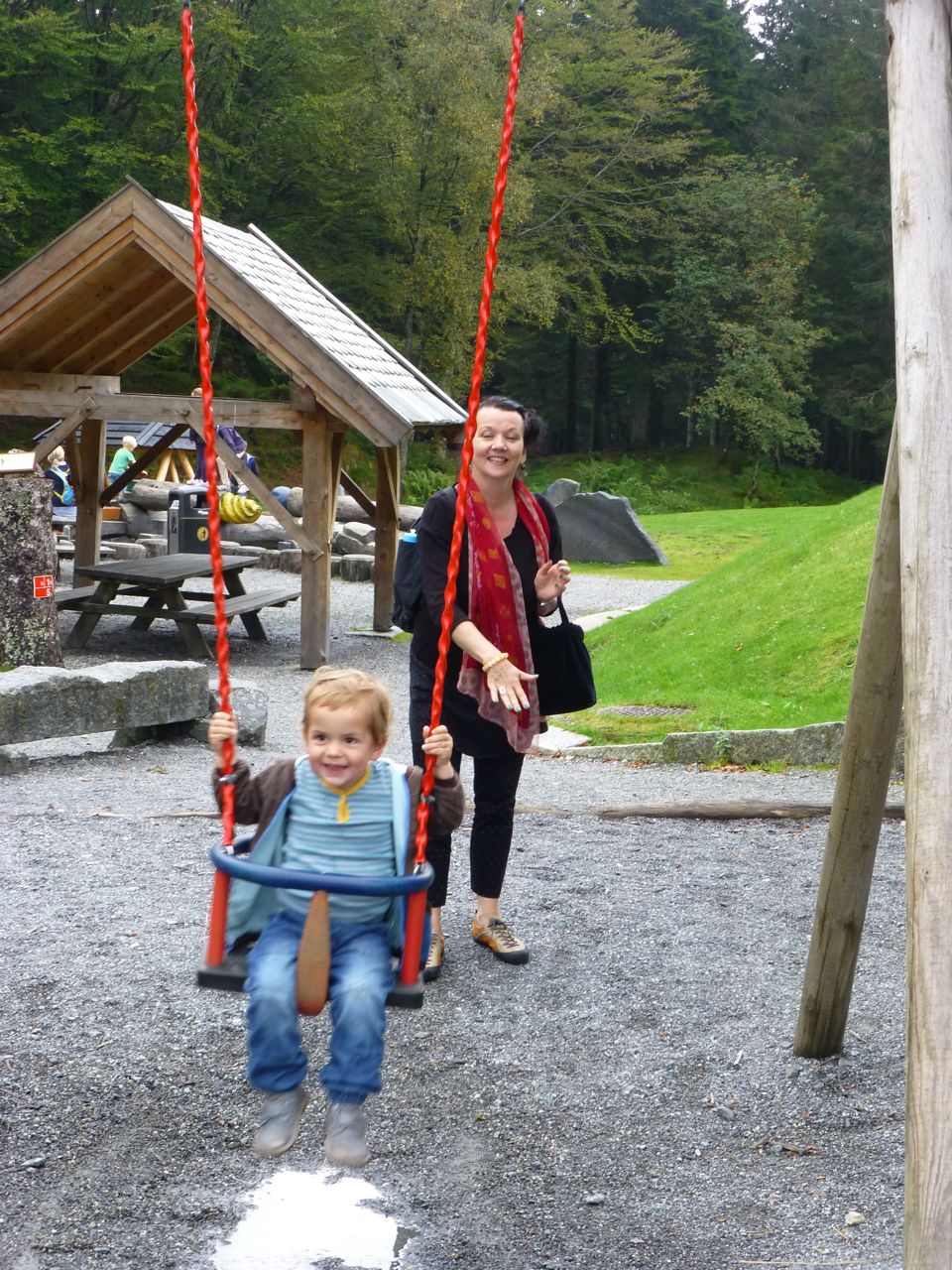 One recent afternoon, we joined Mi’s uncle Stephen, aunt Gerd, and cousin Valdemar on a funicular ride to the viewing platform- the top of the mountain is actually farther up but the platform affords the best views. Valdemar, a precocious almost-three-year-old aspiring fire-fighter, is currently fascinated with machines, particularly big trucks and tractors, so this seemed like the perfect way to spend the afternoon. The funicular, which is like a light train, travels on a single steep track from the city center to a height of 320 meters in just 8 minutes. Interestingly, this, Bergen’s most famous tourist attraction, has been shuttling people up the mountain since January of 1918.
