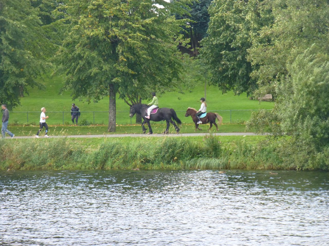 On one of our walks, we were surprised to see these two riders on our familiar path: one on a big horse and one on a small horse.