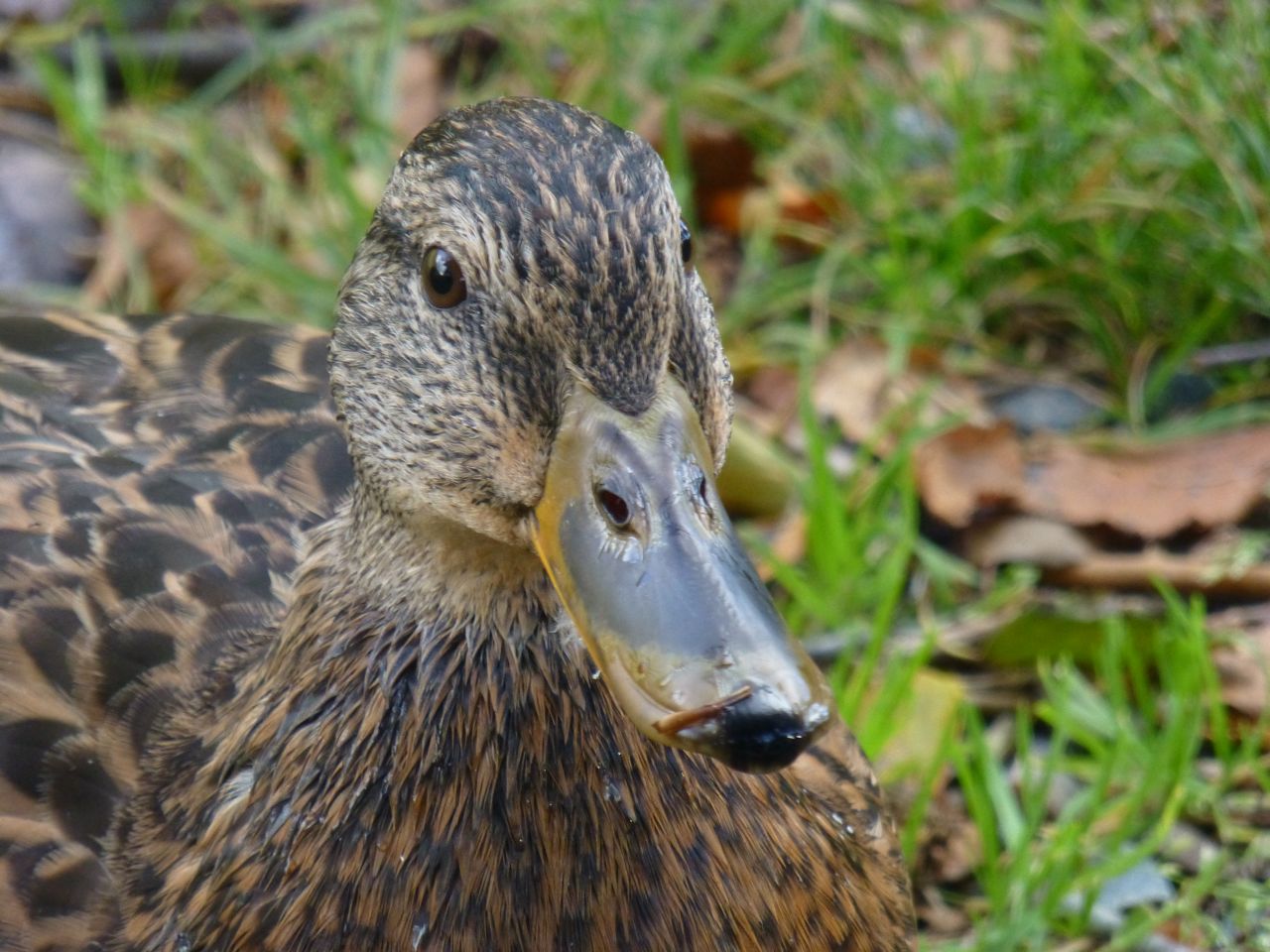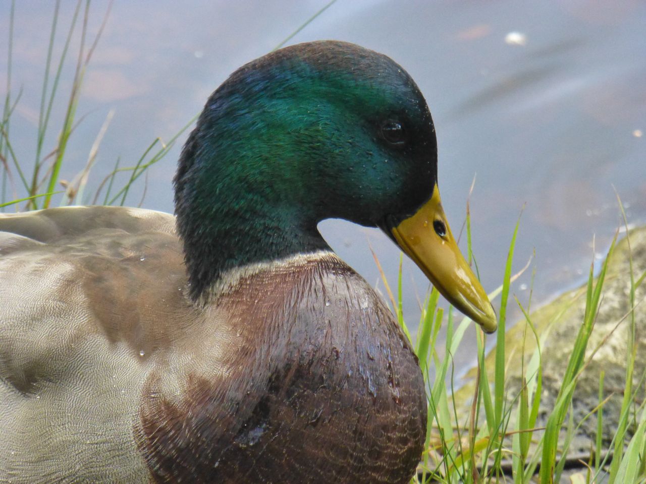 We walked farther along the path and found a lake, beside which we ate the homemade sushi lunch that we brought. This persistent duck wanted to share.