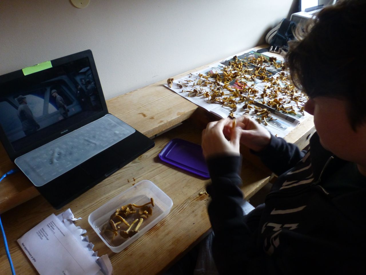 Star Wars makes for great entertainment for the otherwise tedious task of sorting mushrooms. As you can see, our second trip to Fløyen yielded a meagre amount. It seems as though that is a popular spot.