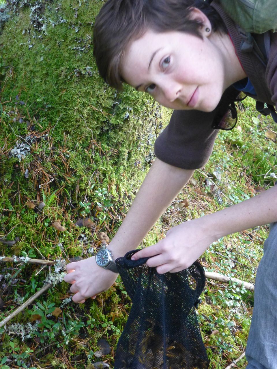 This was Kelly’s first mushroom trip (Mi’s second) and she grinned the entire time, so pleased with every discovery. When we had finished, our bags were about 1/3 full; not bad for a few hours work but definitely far from our most prolific finds. We made our way back to the playground to find Valdemar happily splashing knee deep through a creek that runs along the side of the playground. Soaked to the waist and laughing, this true water baby didn’t seem to mind the chill. He even ate an ice cream after Kelly was able to coax him out of the water.