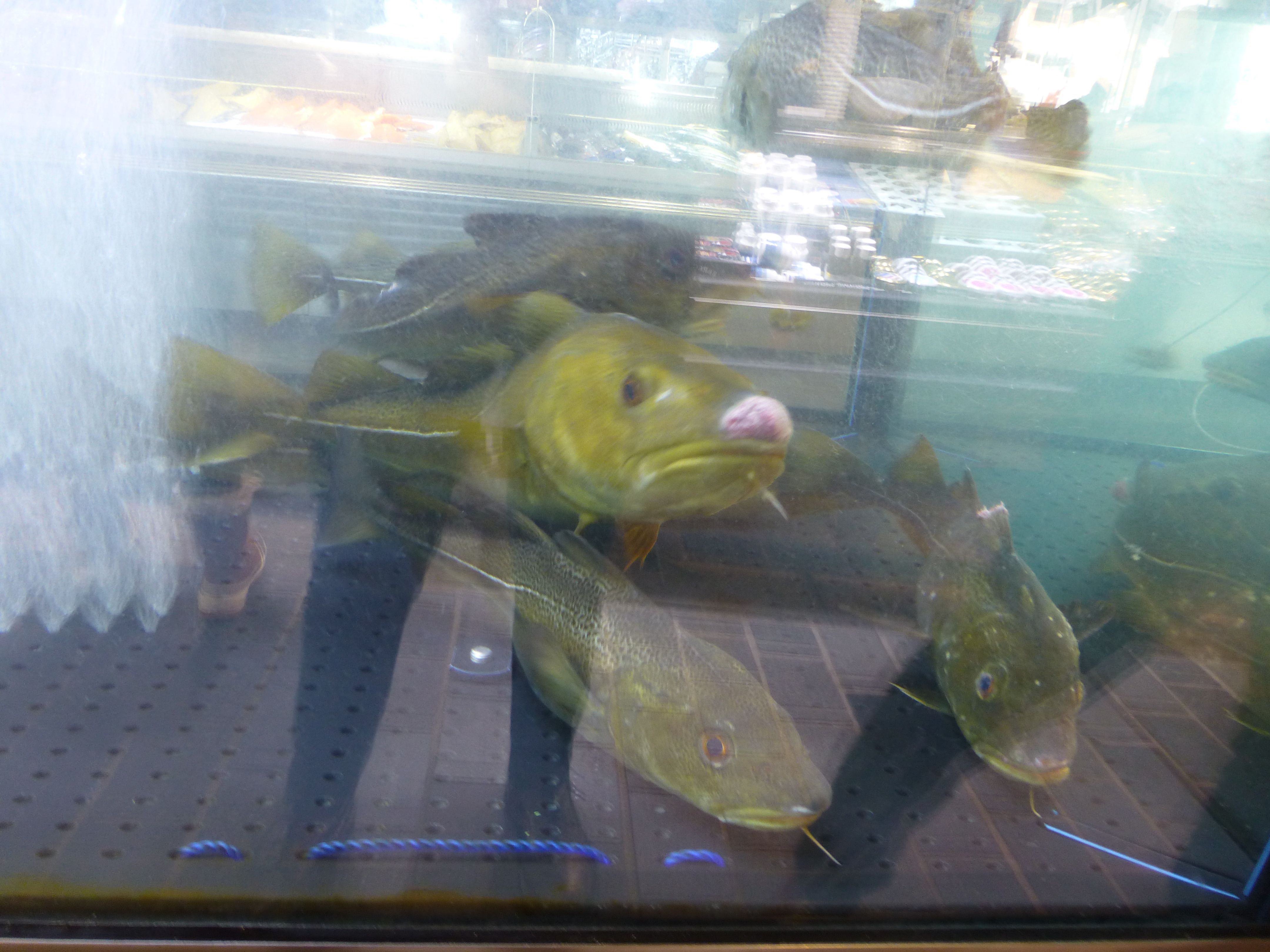 The Bergen fish market is also a popular tourist attraction. We were distressed by this tank of fish where most of the fish had pieces chewed off of their noses and fins.