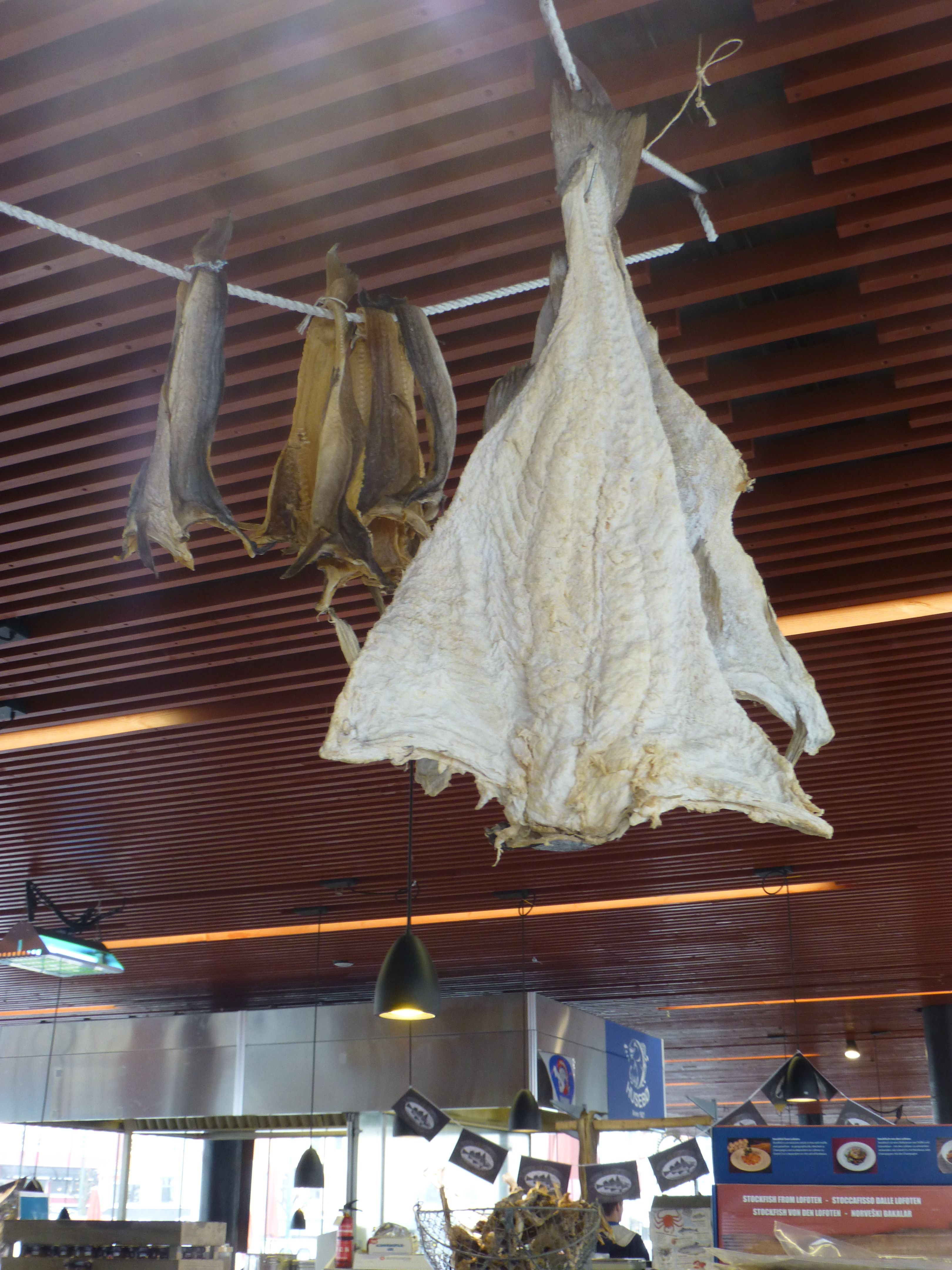 This is the iconic dried cod which can often be found hanging from the ceiling beams of the Hanseatic buildings. Mi thinks that they look ghoulish.
