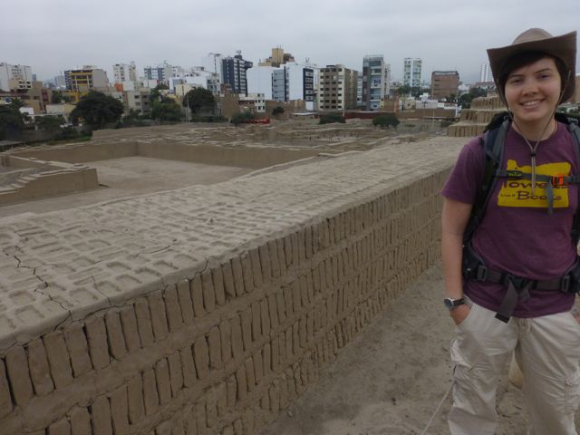 One of our first excursions in Lima was to climb the adobe pyramid, Huaca Pucllana, which was constructed around the year 500. This pyramid is not part of the Inca empire, but was built by an independent people called the Limas. Later, the Limas were conquered by the Waris. Today, the stepped pyramid slouches in sharp juxtaposition against the metropolitan backdrop of the wealthy Miraflores district. Although the adobe bricks are somewhat eroded, the brilliant ‘bookshelf’ construction was designed to ensure that the structure kept standing over millennia of earthquakes and other hazards.