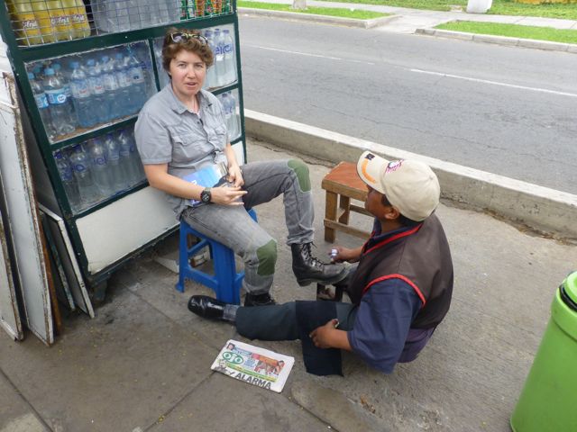 Instantly, we are able to find street art that we can relate to. Below, Kelly gets her shoes cleaned for the first time along with a lecture of the importance of leather maintenance.