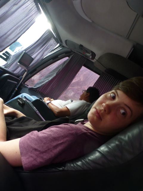 This bus ride was among the more luxurious options available with a seat that extends 170º, free wifi and personal televisions. They still served inedible food and woke us up at 7am with blaring music. Luckily, Kelly has been on many long distance bus rides in S. America so we knew to bring plenty of snacks and earplugs. We also were able to reserve the front row on the second level, which is the best seat in the moving house!!