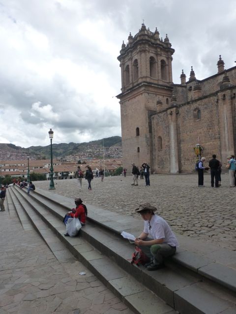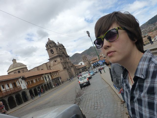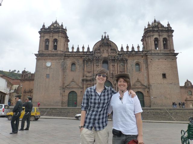 Kelly is checking our Lonely Planet guidebook outside of the Cathedral Basilica of the Assumption of the Virgin, which was completed by the Spanish in 1654 and was built on top of a sacred Inca site, Kiswarkancha. The Inca King, Atahualpa, had just finished a bloody civil war with his brother when he was met with newcomers. Spanish conquistador, Francisco Pizarro Gonzales, whose claim to fame is a bloody one, coerced Atahualpa into the open for what he claimed to be a simple introduction. With only 168 men, Pizarro was able to capture Atahualpa even though over 40,000 Inca soldiers surrounded him. The Spanish held Atahualpa ransom in exchange for goods such as gold and silver, but when they received their payment, the Spanish killed the Inca king anyway, effectively putting an end to the largest pre-Colombian empire of the Americas.