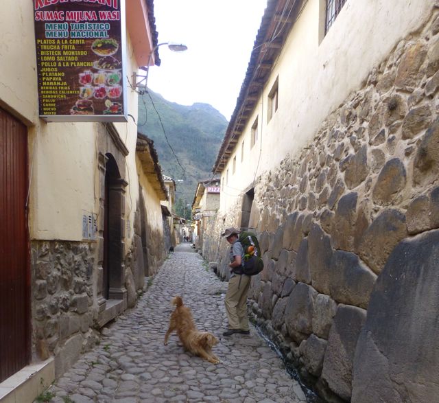 The town of Ollantaytambo is made up of narrow streets that branch out in a grid from a main square. Like in many of the places we visited, stray dogs were our constant companions. Fortunately for the dogs and for the visitors, many tourist places have volunteer organizations which look after the dogs, so we never saw any sick, dirty, or even poorly behaved pups.