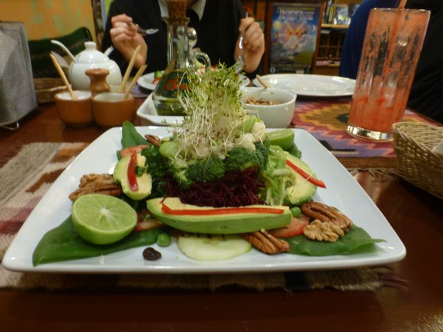 Cusco has something for everyone, including vegan and raw restaurants where we enjoyed these decorative salads and juices.