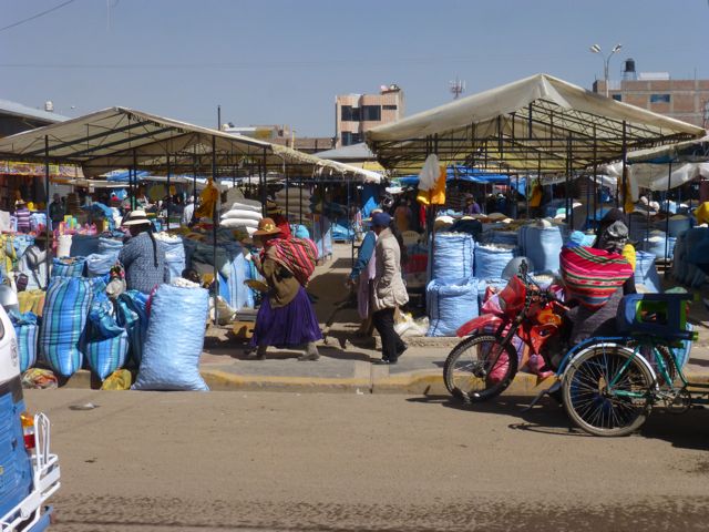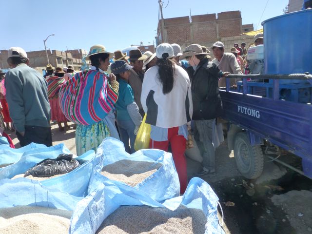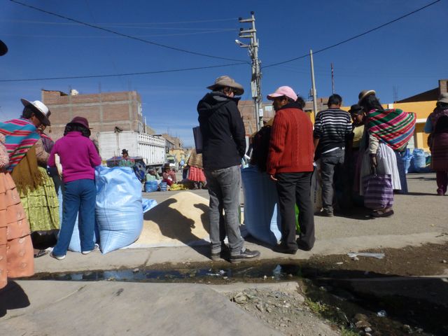 The first time we went to a market looking for quinoa buyers or sellers, we were a little worried about how we would find the best location to approach people. It wasn’t until we saw the bags almost as tall as the locals lining the streets that we had found the quinoa section.