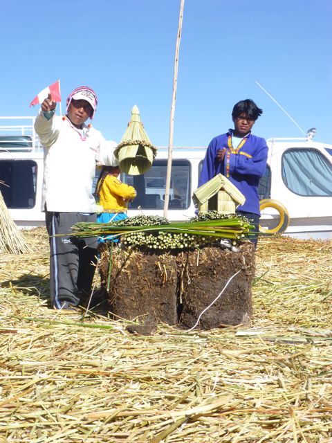 The Uros people have existed since before the Inca. Their claim to fame and means of existence is their construction of floating islands from the reeds that grow in the shallows of the lake. They used this clever defense mechanism to ward off unwanted visitors in times of war and bloodshed.  When Pizarro and his fellow conquistadores came into this region of Peru, they brought with them an iron fist and a determination for world domination. Very close by are the infamous and bloody silver mines of Potosí, Bolivia. The Uros people soon realized what their fate would be if captured by the Spaniards: to become slaves for a few years before succumbing to the horrific symptoms that come along with the unsafe extraction of minerals such as silver. They resorted to hiding amongst the same grasses they used to build their islands whilst the Spaniards explored the true islands in the lake. The thick grass-like stalks are hollow and provide for the perfect foundation for floating islands as well as perfect camouflage against the ruthless invaders.