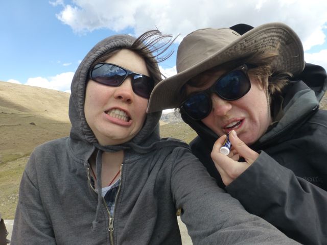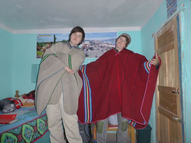 At first, our host “mother” gave us two skirts and blouses to wear. We had to explain to them for a good quarter of an hour that we don’t want to wear the “women’s clothes” but would be happy and more comfortable putting on the less constrictive and intense “men’s” apparel option: panchos.