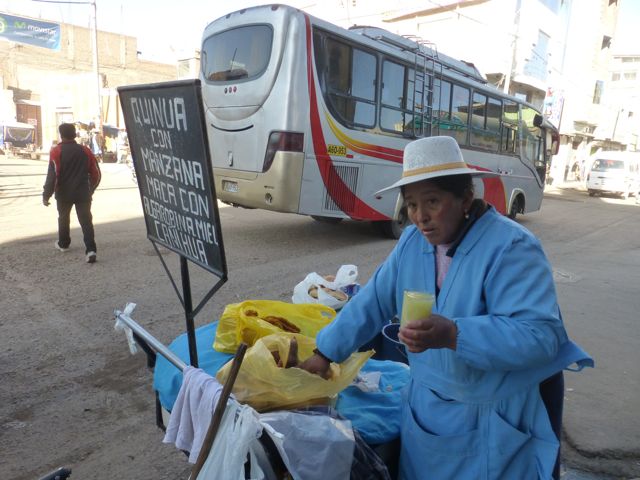 A very common breakfast on the go is a liquid grain drink with fry bread. A mixture of  hot water, quinoa flour, maca powder and corn meal doesn’t sound so appealing to us, but it sure filled us up on the occasions where this was the only thing we had access to eat.
