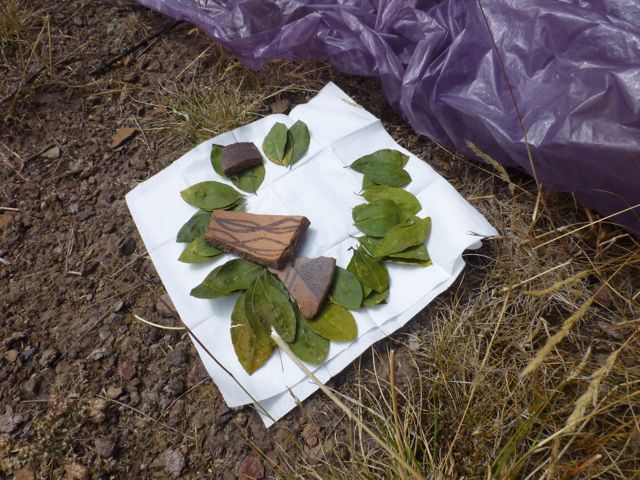 Our friend and guide, Hiliaria taught us a common and important ritual for visiting new and sacred grounds. We are choosing the best coca leaves, making stacks of 3 and placing the 21 stacks we created in a circle. This is to thank the gods for another beautiful day, asking for protection for the people and place we are at and for more beautiful days to follow.