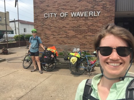 Having arrived in Waverly much earlier than planned, we had plenty of time to kill before cycling the last 14 miles just outside of town to our host’s house. That day, one of our hosts, Joan, had a medical procedure so we had to wait to arrive at their house after 5, which was fine by us because it gave us time to eat a big meal and spend a few hours at the local library. Kelly was thrilled to find this book prominently featured.
