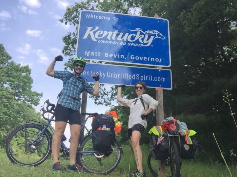 On day 30 of our journey, we entered into our 5th state, the Unbridled Spirit State of Kentucky! To get there, we cycled along the Woodlands Trace National Scenic Byway, which gave us great views of the lush rolling hills and the occasional farms, most of which had pastures full of horses.