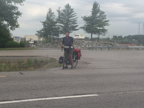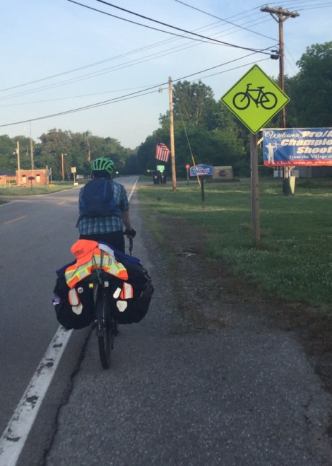 As we were finishing breakfast, we spotted another pair of cyclists heading up the road. We flagged them down and had a brief chat before they continued on their way. These guys are averaging a whopping 80 miles a day! They are riding the Trans-American route and Manford (left) started his trip in Portland- the pair found each other on the road and share the same destination of Yorktown. They laughingly told us that the worst part of their journey so far is…(marked pause)…there is no worst part. Everything was great, you’ll love it, they told us, you can find plenty of places to sleep, etc. We think that men have an easier time on the road due to their natural strength, because they can choose to go days without a shower (something we try to avoid because cleanliness not only keeps the stink away but is also necessary for our health), and their ability to sleep pretty much anywhere without risk of being disturbed by predatory men. That’s why we think that we are tougher because we have much more to contend with.